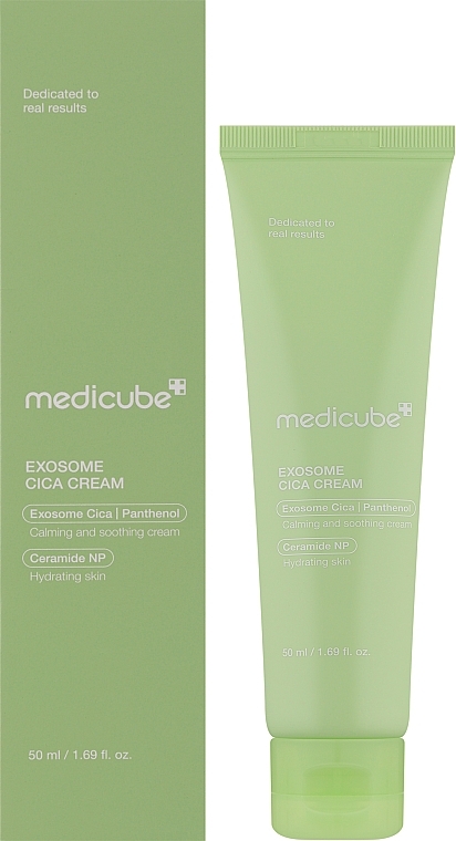 Medicube Exosome Cica Cream“ yra lengvas kremas, skirtas kasdienei veido priežiūrai. Jame esantis CICA kompleksas efektyviai ramina odą. Pantenolis dar labiau pagreitina epidermio regeneraciją, o ektoinas mažina uždegimą. Ceramidas NP stiprina ir atkuria odos hidrolipidinį barjerą, padėdamas apsaugoti ją nuo kenksmingų išorinių veiksnių, tokių kaip vėjas ar šaltis. Hidrolizuota hialurono rūgštis padidina odos drėkinimo lygį ir palaiko produkto raminamąjį poveikį, o CICA egzomos padeda pristatyti daugybę vertingų komponentų giliai į odą.